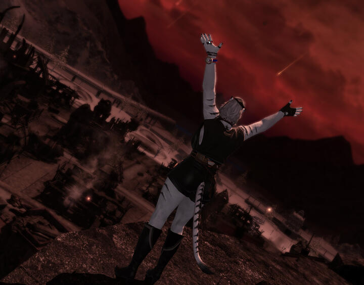 In the remote mountains of Eorzea, where the air was thin and the skies were often shrouded in mist, there lived a Hrothgar woman named Tora. Her fur was as white as freshly fallen snow, a stark contrast to the world she chose to immerse herself in. Tora was known throughout the land not for her strength or battle prowess, but for her art—paintings that depicted scenes of desolation, ruin, and the haunting stillness that follows calamity.Her cottage, nestled at the edge of a cliff overlooking a once-great valley, was filled with canvases of various sizes. Each one told a different story, yet all shared a common theme: the aftermath of destruction. Charred forests, crumbling cities, and broken landscapes were her muse, rendered in such vivid detail that they seemed to bleed the sorrow and despair they captured.Tora’s love for painting morbid scenes began long ago, during a time when the land was ravaged by war. As a child, she witnessed the destruction of her homeland—a flourishing kingdom reduced to ashes in the blink of an eye. The once-lively streets were now silent, the laughter of children replaced by the mournful cries of those who had lost everything. It was in those bleak moments that Tora found solace in art. With a simple brush and some pigments, she began to recreate the scenes that haunted her dreams, as if capturing them on canvas would somehow contain the sorrow within her heart.As the years passed, Tora's art evolved, becoming more detailed and evocative. She no longer painted just the ruins themselves, but the stories behind them. A toppled statue of a forgotten king hinted at a once-proud lineage, now erased from history. A lone, wilted flower growing amidst the rubble symbolized a flicker of life in the shadow of death. Her paintings spoke of the fragile beauty that remained in a world devastated by ruin.Despite the grim nature of her work, Tora was not without admirers. Scholars, adventurers, and even other artists made the long journey to her mountain home to gaze upon her creations. They were drawn not just by the skill with which she painted, but by the raw emotion that emanated from each piece. Her art, though somber, was a reminder of the resilience of life and the inevitability of decay—a duality that resonated deeply with all who saw it.Yet, Tora remained solitary, finding comfort in her solitude and the quiet whispers of the wind as it blew through the valley. Her paintings were her companions, each one a piece of her soul laid bare for the world to see. In the silent moments of the night, she would stand before her easel, brush in hand, and lose herself in the act of creation. The world outside might have moved on, but within the walls of her cottage, time stood still.One day, as Tora was finishing a new painting—a bleak depiction of a ruined temple engulfed by a sea of fog—a visitor arrived at her door. It was an old man, his face lined with the marks of time, his eyes weary but kind. He introduced himself as a historian, one who had spent his life recording the events of the past, trying to make sense of the world’s endless cycle of creation and destruction."I’ve come to see your work," the historian said, his voice soft. "They say your paintings capture the soul of this land, the stories that words cannot tell."Tora welcomed him in, guiding him through her gallery of sorrowful masterpieces. The historian moved slowly from one canvas to the next, his gaze lingering on each one, as if he were reading the pages of an ancient, forgotten tome.Finally, he stopped before the painting of the ruined temple. "This one," he said, his voice heavy with emotion. "It speaks of a loss far greater than what the eye can see. The kind of loss that lingers in the heart, long after the world has moved on."Tora nodded, understanding his words more deeply than he could know. "It’s not just the ruins that fascinate me," she replied. "It’s what they represent—the end of something that once was, and the beginning of what comes after. In destruction, there is a strange kind of beauty, a reminder that nothing lasts forever, and that in the ashes of the old, something new will always rise."The historian looked at her, his expression a mix of sadness and admiration. "You see the world with eyes that few possess, Tora. Your paintings are more than just images of ruin—they are echoes of the past, lessons for the future. They remind us that even in the darkest of times, there is a story to be told, a truth to be uncovered."Tora smiled faintly, her heart lightened by his words. "Perhaps that’s why I paint," she said. "To keep those stories alive, even when everything else has crumbled away."The historian nodded, and as he took his leave, he left behind a small book—a collection of his writings, chronicling the history of the land. "For your inspiration," he said before disappearing into the mist.Tora returned to her easel, the historian’s words echoing in her mind. She opened the book and began to read, finding within its pages the stories of the ruins she had painted, and those she had yet to create. And as she dipped her brush into the paint, she felt a renewed sense of purpose—a desire to continue capturing the beauty of the broken, the sorrow of the lost, and the hope that lingered, even in the aftermath of ruin.And so, in her mountain retreat, Tora continued to paint, her art a silent testament to the resilience of the world, and the enduring power of creation in the face of desolation.